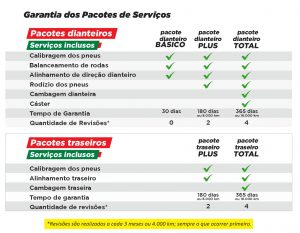 - Em até 30 dias após a realização de um serviço (como alinhamento ou balanceamento, etc).